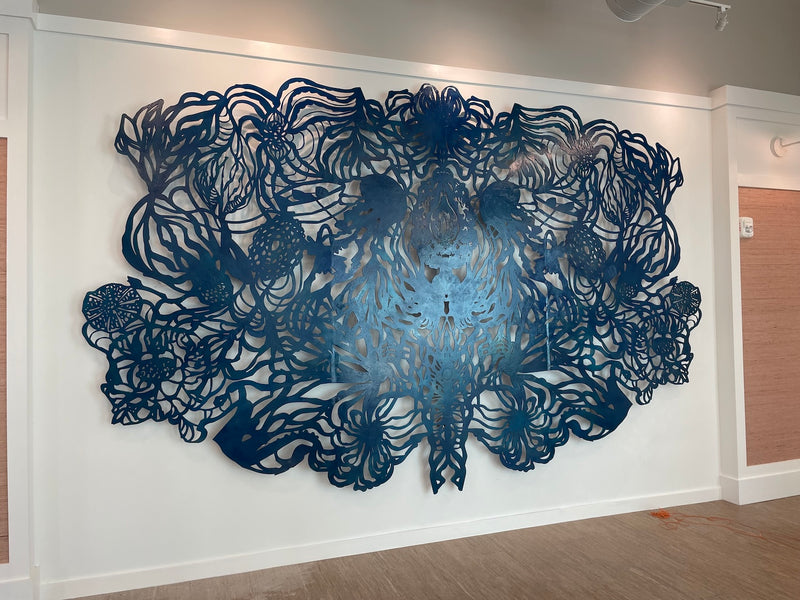 The designs showcased below capture the exquisite essence of nature using cut aluminum. They feature intricate shapes inspired by organic, crystalline, and marine forms, reminiscent of delicate lace. These shapes are symbolic of the fluidity and responsiveness of water and air, which are indispensable elements in our existence.